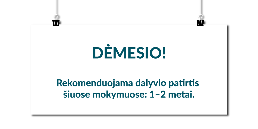 Mokymų trukmė – 8 akademinės valandos.